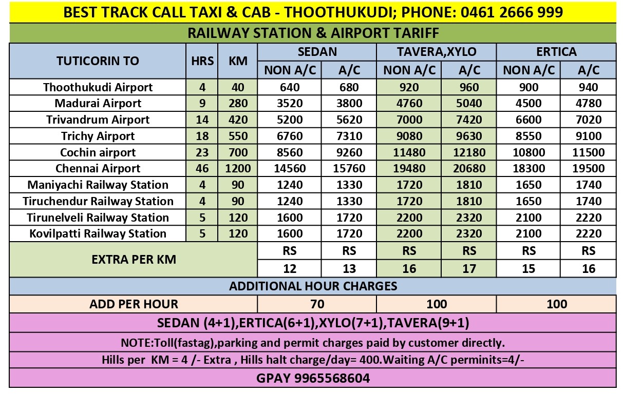 Best Track Railway station & Airport Tariff Details